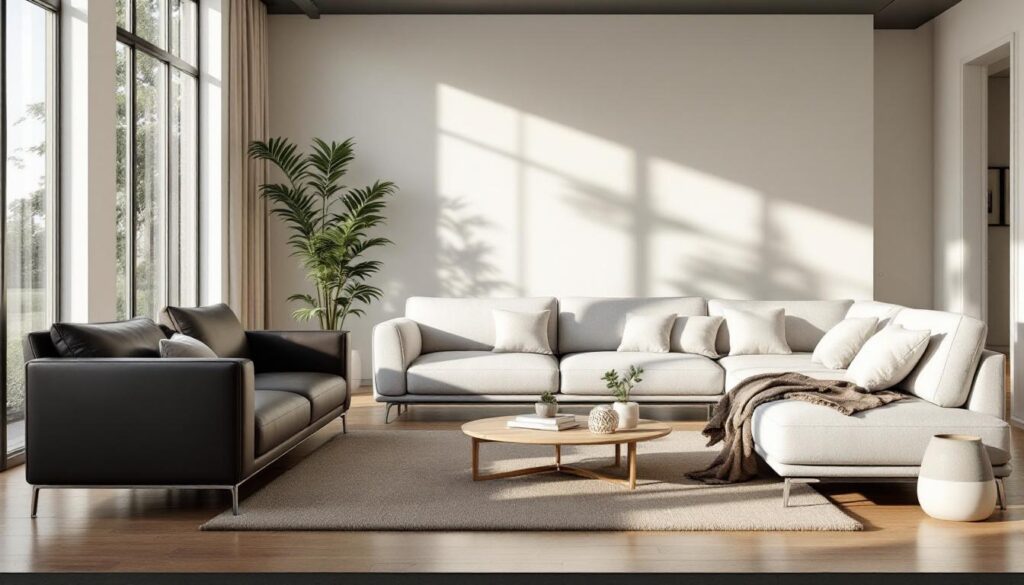 La taille du canapé doit être adaptée à l’espace de votre salon. Mesurez la zone disponible et considérez la configuration de votre pièce pour assurer une circulation fluide.